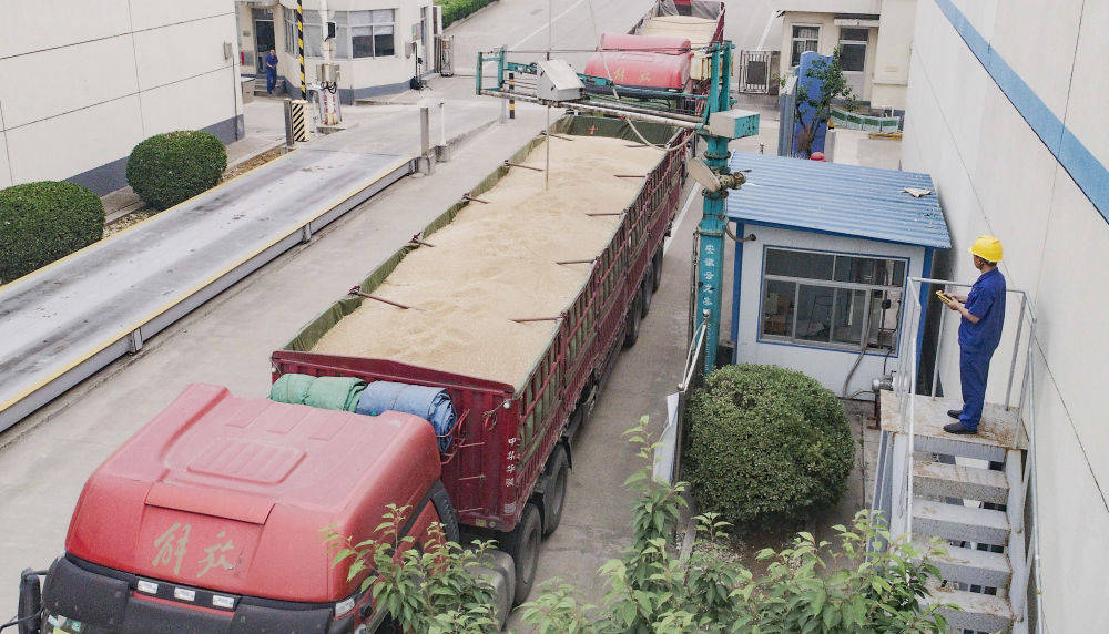 6月1日,在鲁粮集团鲁南国家粮食储备库,工作人员在对小麦进行抽样。新华社发(尹召功 摄)