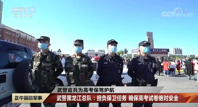 武警黑龙江总队执勤支队排长 王鑫:针对此次任务我们提前制定了周密的计划,进行了现地勘察,精心挑选了政治合格、素质过硬的骨干力量作为执勤人员,并进行了专勤专训,任务中,我们采取了多种执勤方式,全力保障高考工作安全顺利进行。