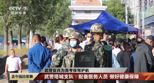高考期间,新疆塔城地区的最高气温达到了37摄氏度,天气炎热,武警新疆总队塔城支队官兵在对考点周边街道、人员密集地等重点区域进行严密布控的同时,还专门配备医务人员并准备了各类防暑药品和口罩,做好考生和家属的健康保障工作。
