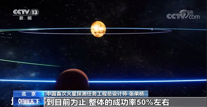 中国首次火星探测任务工程总设计师 张荣桥:去火星的难度很大,到目前为止,整体的成功率50%左右,对于着陆类的任务成功率只有40%多一点,这是客观现实。当初我们的方案是选择了一个风险相对较小的,也就是去环绕的方案。