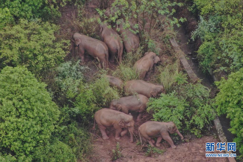 6月10日在玉溪市易门县十街乡拍摄的象群(无人机照片)。新华社发