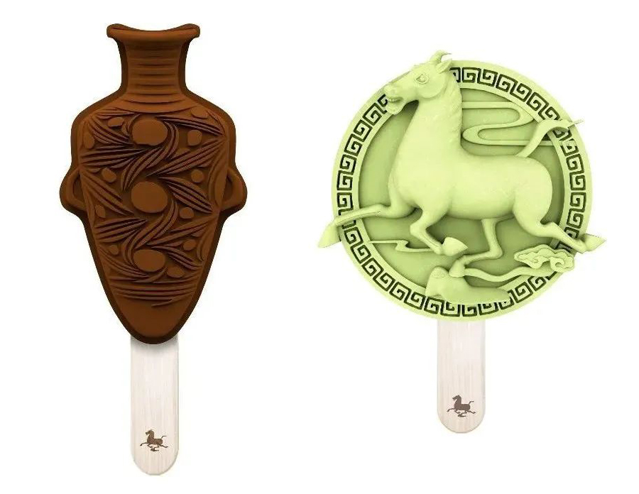 可以吃的“文物”!甘肃省博物馆推出铜奔马与彩陶瓶文创雪糕。