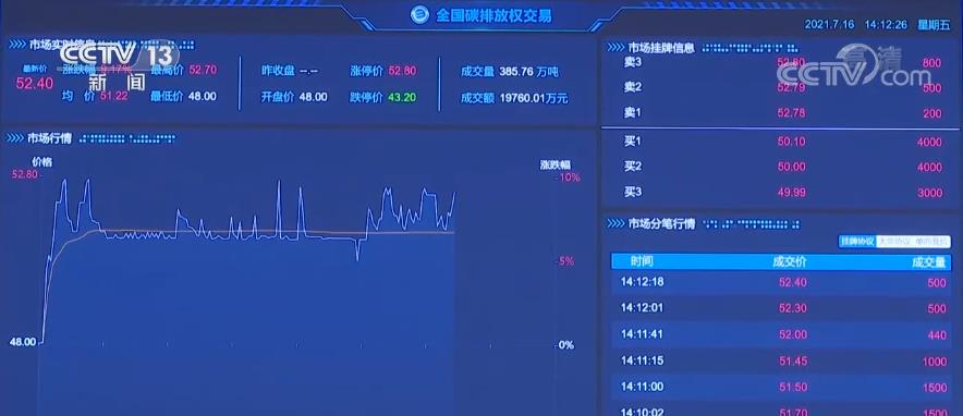 央视网消息:昨天(7月16日)上午,全国碳排放权交易市场正式启动,交易中心设在上海。首日成交量为410.40万吨,成交额逾2.1亿元,成交均价51.23元/吨。中国石油、中国石化、华能集团、华电集团、申能集团等企业参与了全国碳市场首日交易。