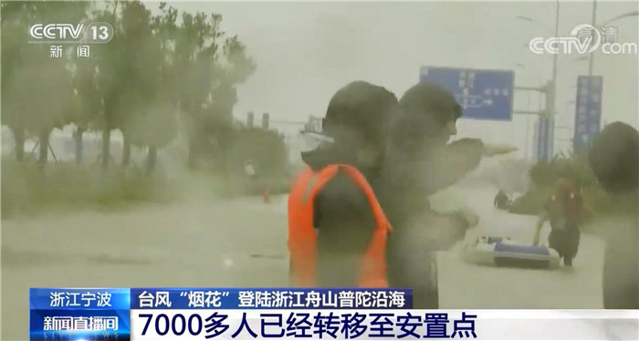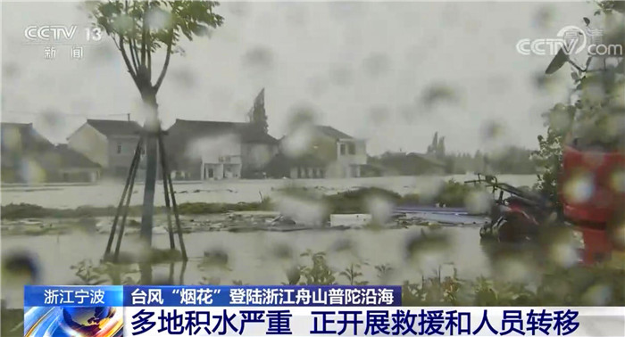 【台风“烟花”登陆浙江舟山普陀沿海】多地积水严重 正开展救援和人员转移