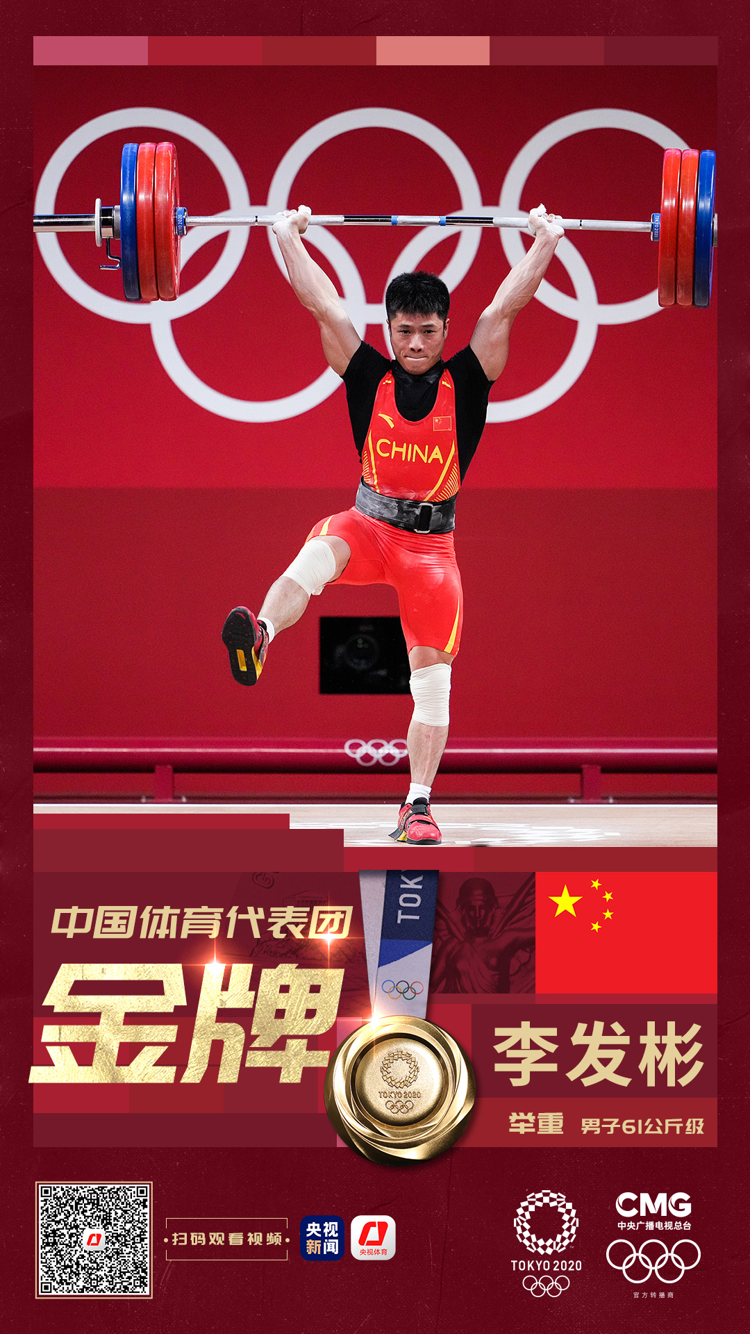 北京时间25日下午,在东京奥运会举重男子61公斤级比赛中,中国选手李发彬以抓举141公斤、挺举172公斤、总成绩313公斤获得冠军,同时打破挺举和总成绩奥运纪录。