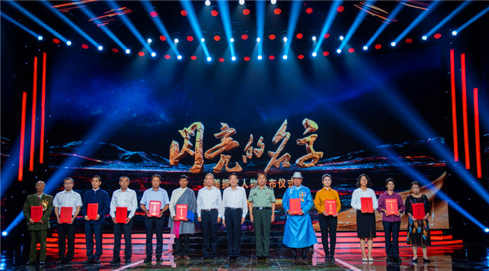 中宣部副部长、全国双拥工作领导小组副组长蒋建国(右7),退役军人事务部副部长、全国双拥工作领导小组副组长兼办公室主任钱锋(左7),中央军委政治工作部群众工作局局长、全国双拥工作领导小组成员兼办公室副主任肖安水(右6)为最美拥军人物颁发证书。