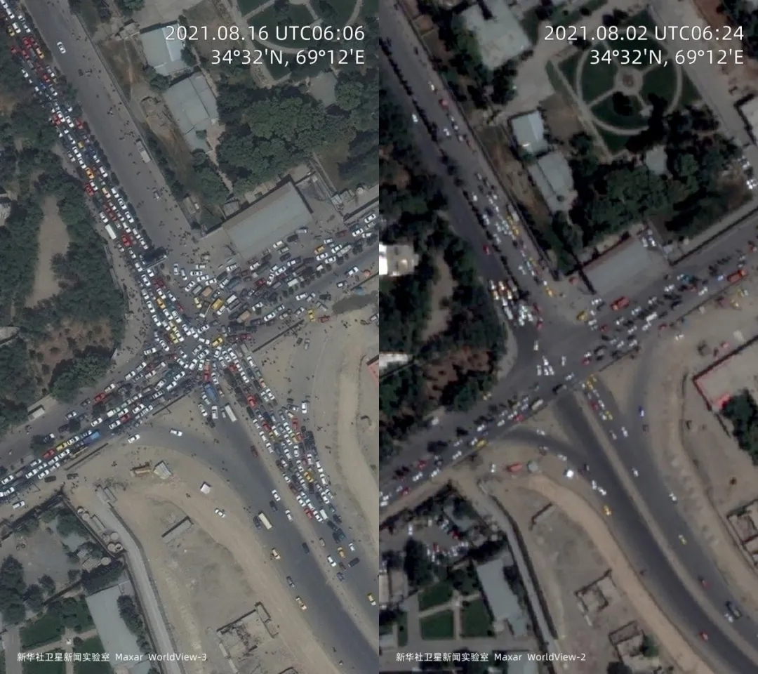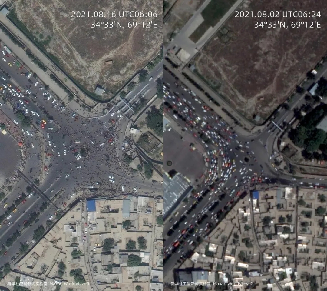 8月16日,商业卫星清晰记录下喀布尔国际机场与街头的混乱景象。
