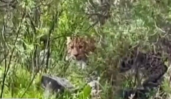 央视网消息:近日,在青海三江源杂多县昂塞乡,一名兼职生态管护员的牧民达杰朋措在例行巡护时,突然发觉路边的树丛中有异常响动,仔细一看,树丛中隐约探出一个花纹斑斓的动物脑袋。他立即停住脚步压低气息不去惊扰,同时拿出手机悄悄开始拍摄。达杰朋措非常幸运,视频中的金钱豹察觉了人类的靠近,却只是警惕地与达杰朋措对视十几秒后,便放松戒备蹲坐下来,此时,一直隐匿在树叶背后、布满标志性铜钱斑纹的身躯也在手机视频中完整地展露出来。这段珍贵的视频既记录到了野生动物的近景画面,也成为路遇猛兽后应急处置方式的现场教程。