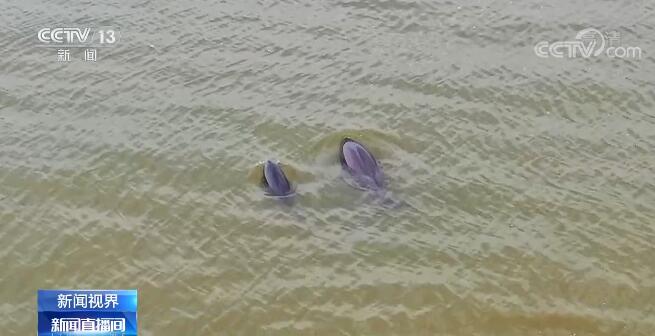 再来看,在江西赣江南昌段扬子洲水域,24日傍晚,记者在这一水域用无人机航拍到成群江豚嬉戏觅食的场面,江豚不时成群跳跃,掀起阵阵浪花。去年1月1日起,长江流域水生生物保护区全面禁捕。近两年来,随着赣江生态环境的逐步好转,已经阔别赣江流域扬子洲段的江豚又回来了,且逐年增多,今年数量达到30头左右,为历年来罕见。