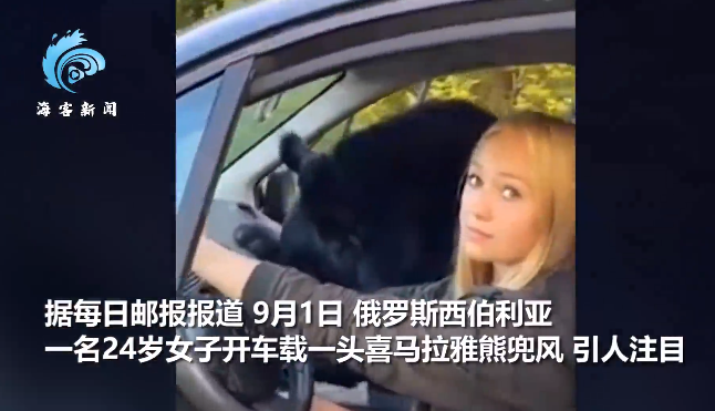 ·俄罗斯一女子开车载熊兜风,熊坐在副驾悠哉看风景。