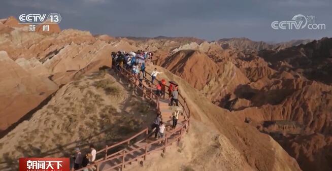 今年的中秋假期,甘肃张掖吸引了众多游客前来游玩。从辽宁来的游客对张掖丹霞景区慕名已久,这次正好趁着小长假跟家人朋友一起来游玩,色彩艳丽、气势磅礴的彩色丘陵让他赞叹不已。