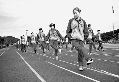 江西省上饶市铅山县武夷山中心小学学生正在体育锻炼。丁铭华摄/光明图片