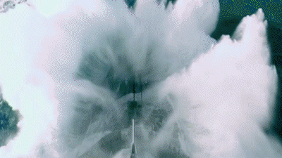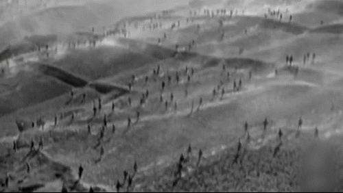 画面当中以折线形的构图,自左上角向右侧犹如洪流曲折浩荡,产生强大的视觉冲击力。
