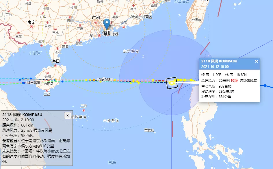 央视网消息(记者 刘宇):10月12日,深圳市气象局公众号“深圳天气”发布消息称,11时30分将全市台风蓝色预警升级为黄色,这是深圳今年首个台风黄色预警信号。预计受“圆规”影响,12-13日深圳(含深汕)沿海、高地和海面最大阵风将达到11-13级。全市台风黄色预警生效,进入台风防御状态。