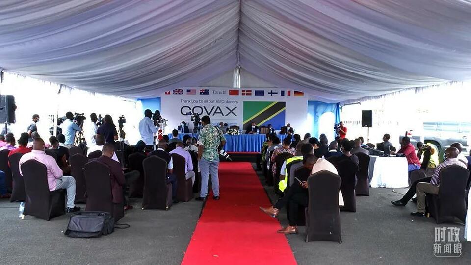 △2021年10月8日,中国政府通过“新冠疫苗实施计划”捐赠的新冠疫苗运抵坦桑尼亚。当地政府在机场举行隆重的欢迎仪式。(总台记者史跃拍摄)
