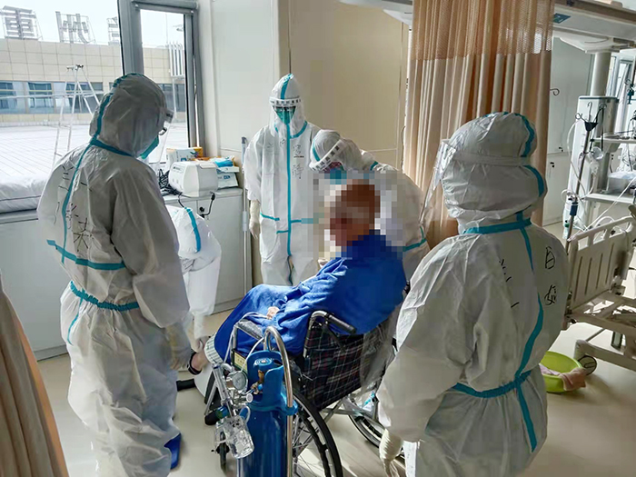 刚到隔离病房,她负责护理的是一位80多岁的老爷爷,当时老人家十分虚弱,精神不是很好。第一次给老人送晚饭,老人拒绝了。对方说自己年龄大了,恐怕过不了这一关,不吃了。