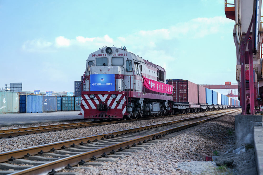↑2018年8月26日,X8044次中欧班列(汉堡—武汉)到达武汉吴家山铁路集装箱中心站,这是累计开行的第10000列中欧班列。