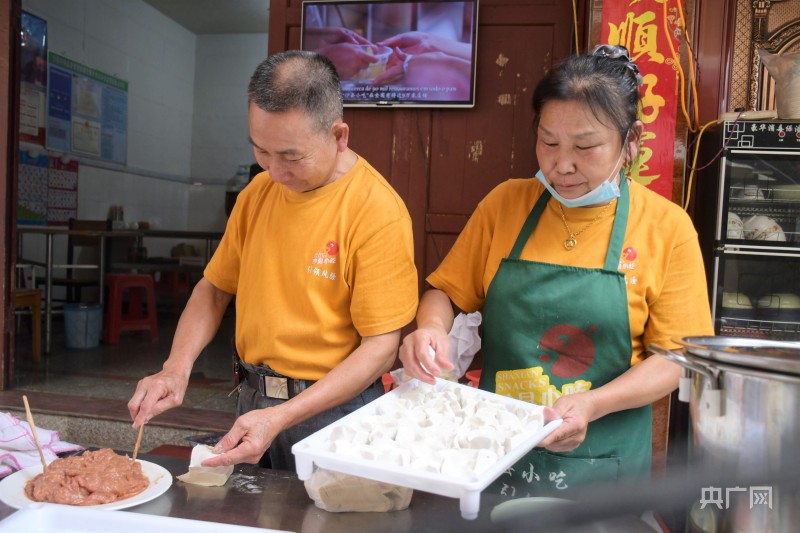 俞邦村里,俞和传夫妻二人正在制作沙县小吃(央广网记者 龚雯摄)
