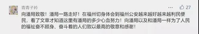 他牺牲的消息传开后,悲痛之情萦绕着福州城。出殡当天,数万老百姓早早等候,有的人手捧白花,长躬不起;有的人拉着自带的横幅,哽咽地喊着“潘局,一路走好”,普通话、福州话声音不断……