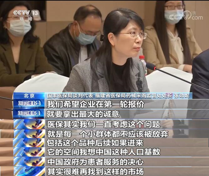 国家医保局谈判代表 福建省医保局药械采购监管处处长 张劲妮:非常艰难地进到谈判空间。