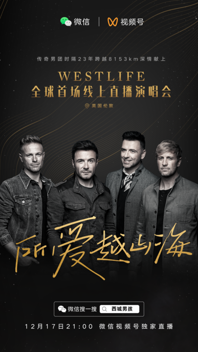 在全球有着12亿用户的微信,则成为一个很好的分享平台。微信团队有关负责人表示,微信视频号希望借助平台能力和创作者生态,成为文化交流的连接器。基于此,策划了“所爱越山海”为主题的流行巨星在线直播演唱会,首场邀请到了在中国颇受欢迎的组合西城男孩。