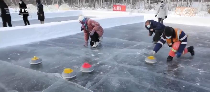 在我国最北部的黑龙江漠河市北极村的冰雪游乐园,市民和游客们在天然冰面上玩冰壶、抽冰尜、骑冰上自行车、滑冰爬犁,享受冰雪运动带来的快乐。