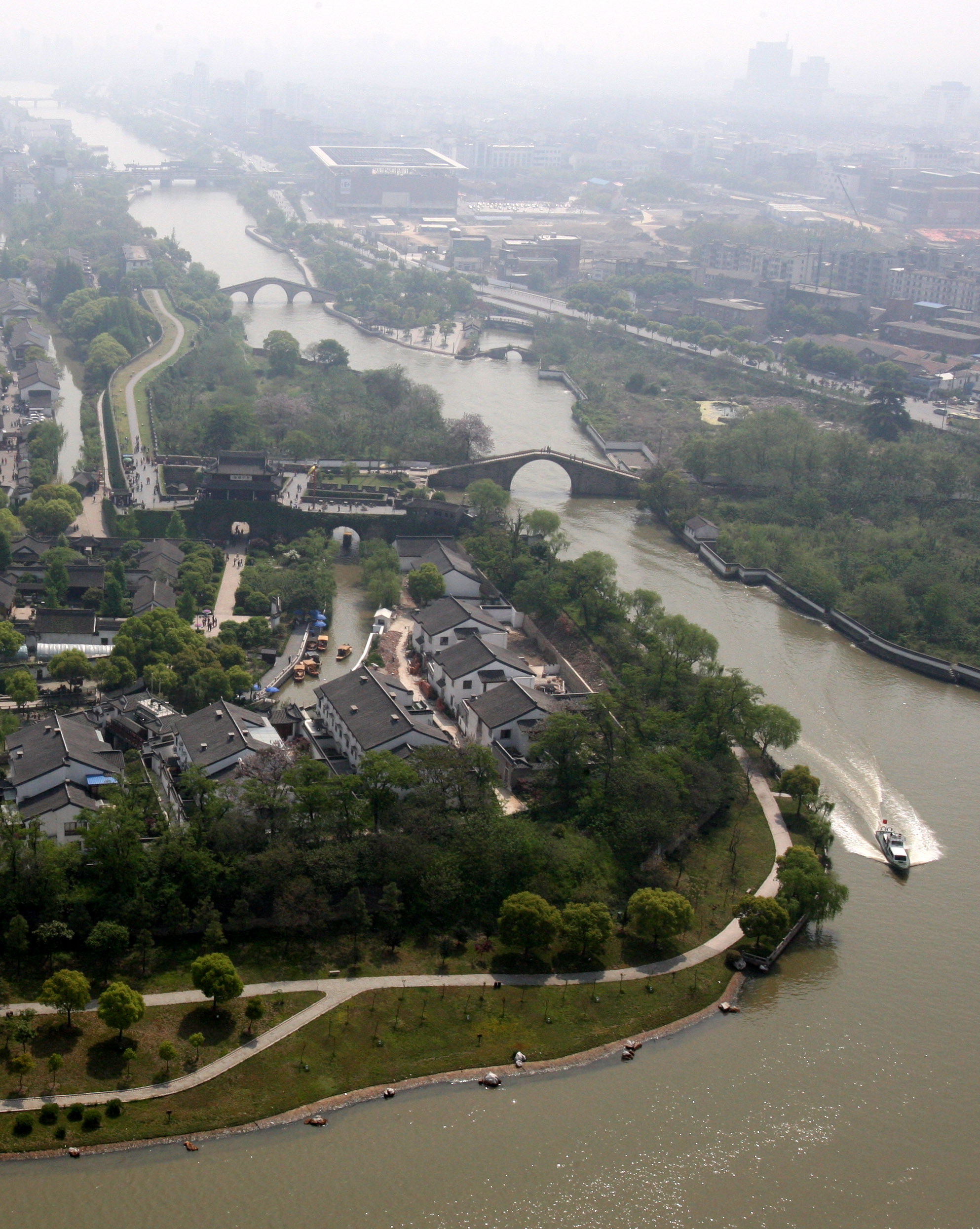 位于江南运河与娄江交汇处的苏州,濒太湖,依长江,素称江南水陆交通枢纽。自吴王阖闾筑城(公元前514年)起,就为东南重镇。苏州建城后不久,历代统治者就以苏州为起点,陆续向西、北、东、西北、南等方向开凿运河,构成了苏州与外界联系的四通八达的水道。其中,向北、向南两个方向的运河经隋大业年间的进一步开凿,成为大运河江南段的重要组成部分。运河之水,一部分汇入护城河;一部分先融入城内水系,以三横四直的主干水系构成主要水网,成为城市居民重要的生活水源,然后再从城门泻出后汇入运河。苏州也因此成为受运河水滋养的城市,整个城市与运河连成一体。
