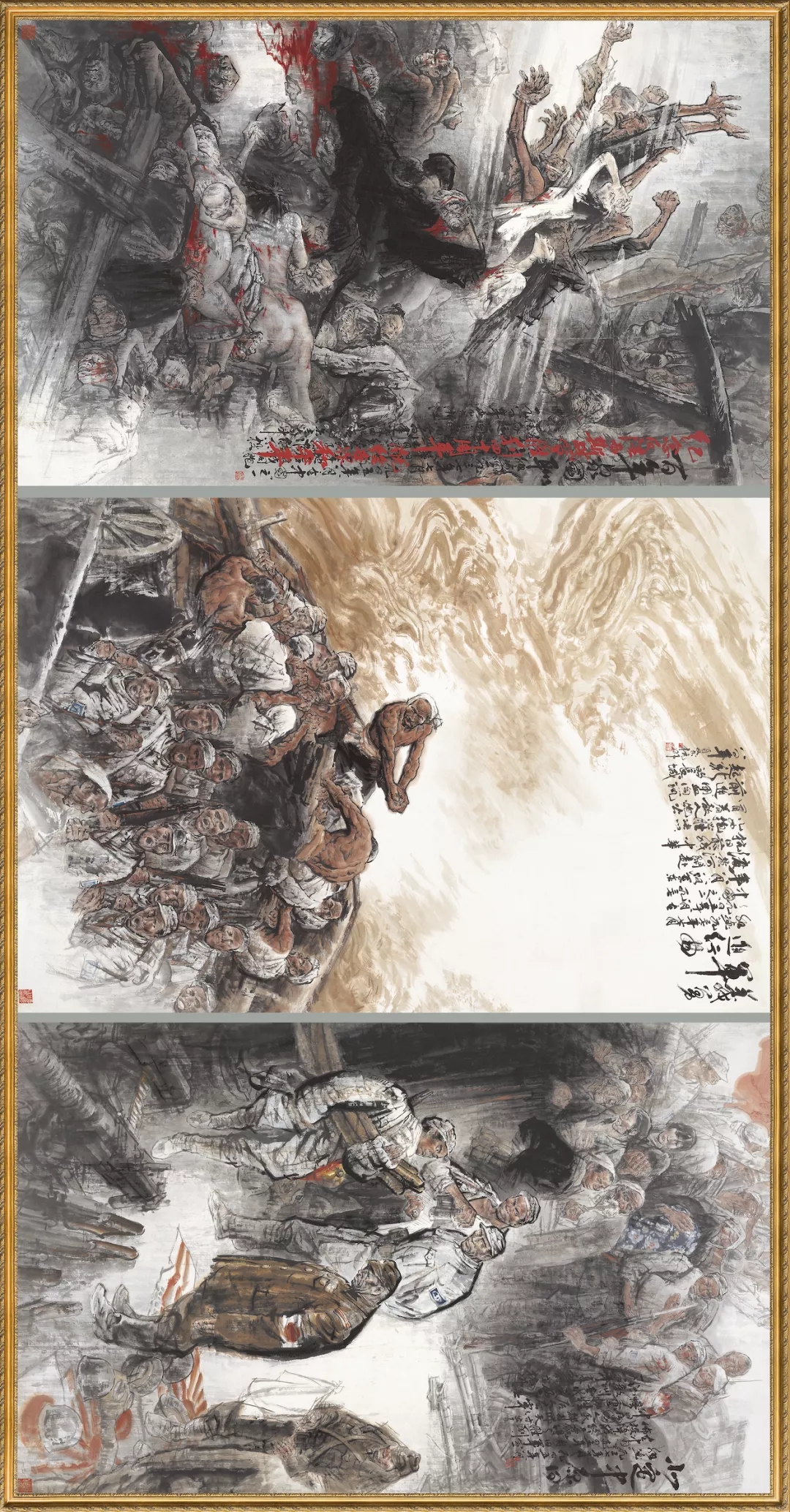 距离画作《保卫黄河三部曲》诞生已经过去了三十余年,我们仿佛能再一次听到民族不屈精神的嘹亮歌声——那里有大地悲壮的呜咽、有黄河奔腾的咆哮、也有浴血胜利的凯歌。