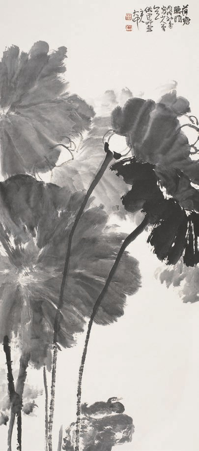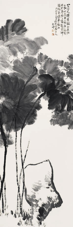《仿八大山人荷花图》/176×57厘米/纸本水墨/2006年