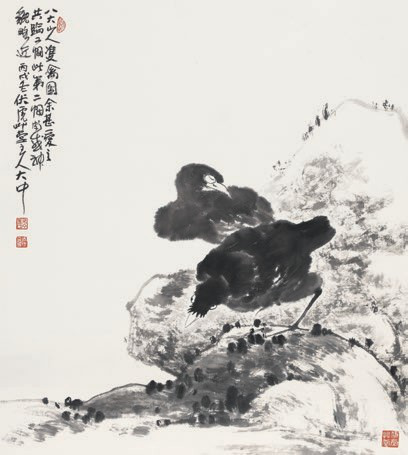 《仿八大双禽图》/68×62厘米/纸本水墨/2006年