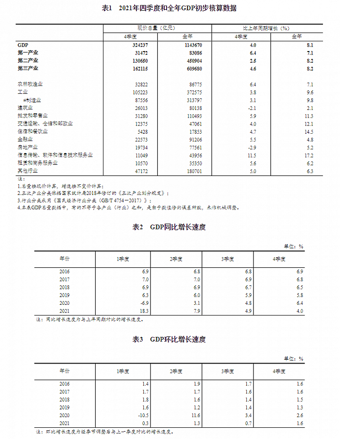 国家统计局网站1月18日公布2021年第四季度和全年国内生产总值(GDP)初步核算结果。第四季度房地产业GDP同比下降2.9%,建筑业GDP同比下降2.1%,信息传输、软件和信息技术服务业GDP增长11.5%。