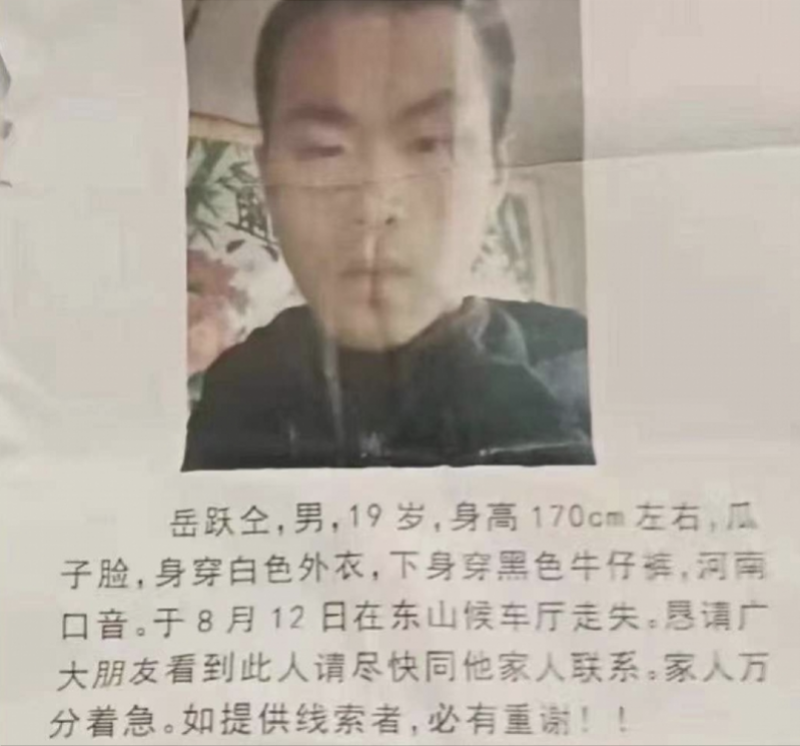 同日,南都记者与岳某某老家一位熟悉情况的村民取得联系。他向记者证实,岳某某是河南濮阳人,常年在外务工,近几年和家属去了山东威海,把年迈的老人留在老家。这位村民表示:“他们家情况挺不好的,都是务工人员,他父亲瘫痪,他母亲也有病。(大)儿子2019年在威海那边丢失了,都两年了,(岳某某)一直在找,找不着。”