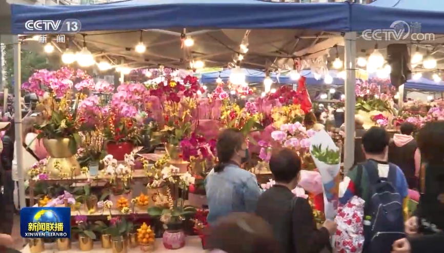 香港的花市和街市早早就热闹起来,市民们购买寓意吉祥的鲜花,置办各色年货,迎接虎年春节。