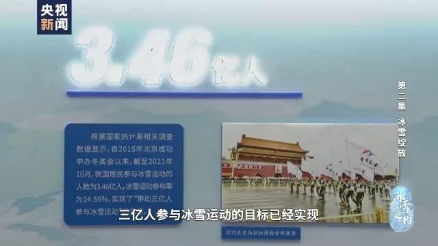 忽如一夜春风来,千城万地雪花开,冰雪运动早已越过山海关,走向全国。中国的冰场和雪馆蓬勃发展,向南,向西,向东,从塞北雪国到江南水乡,从西部边陲到东部沿海,冰雪之花华丽绽放。根据《“带动三亿人参与冰雪运动”统计调查报告》,从2015年北京申冬奥成功到2021年10月间,全国冰雪运动参与人数达到3.46亿人,“三亿人参与冰雪运动”已经从愿景变为现实。