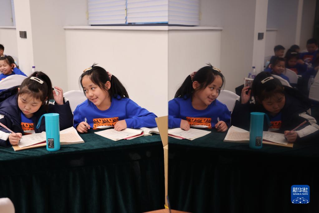 马兰花儿童合唱团的孩子们在酒店会议室写作业(1月11日摄)。新华社记者 许雅楠 摄