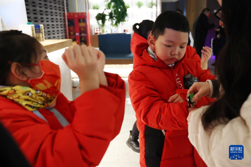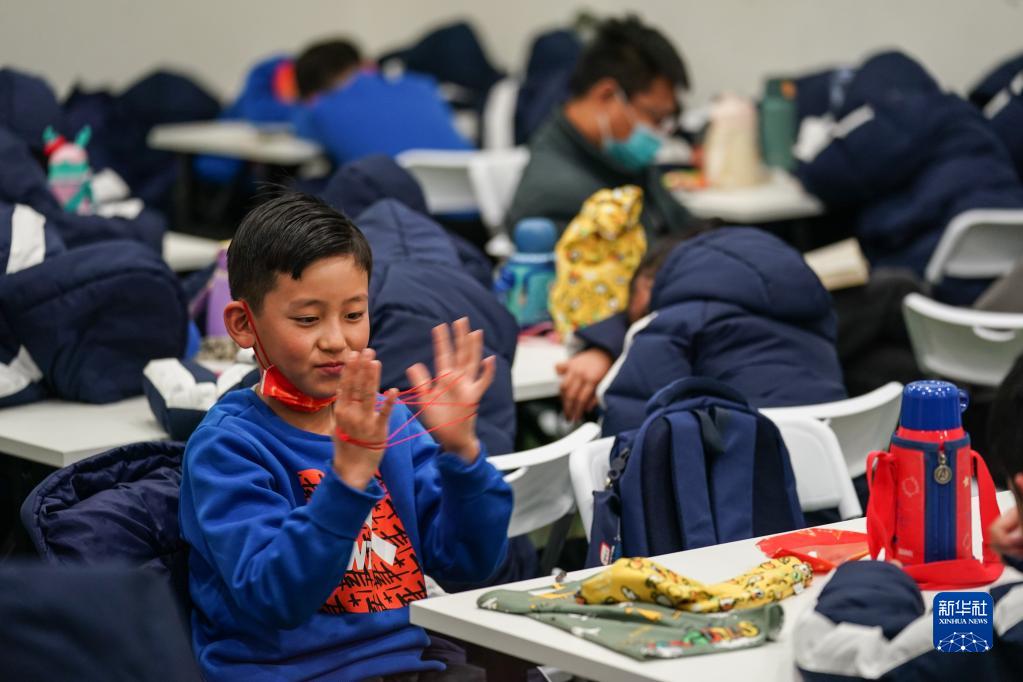 在国家体育场(鸟巢)的候场间,马兰花儿童合唱团的孩子们在等待彩排(1月15日摄)。新华社记者 许雅楠 摄