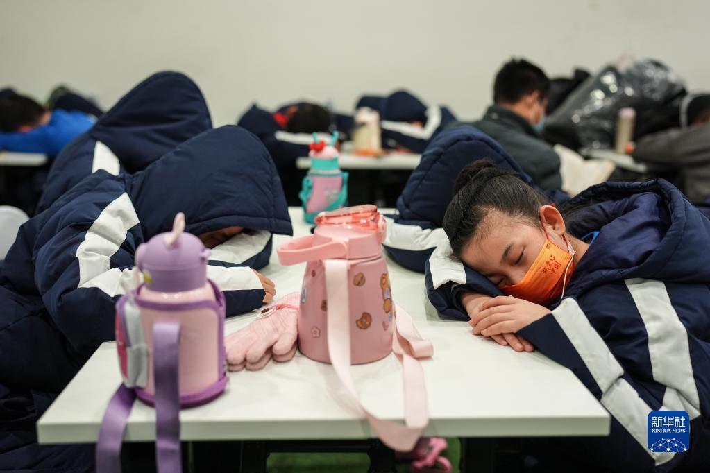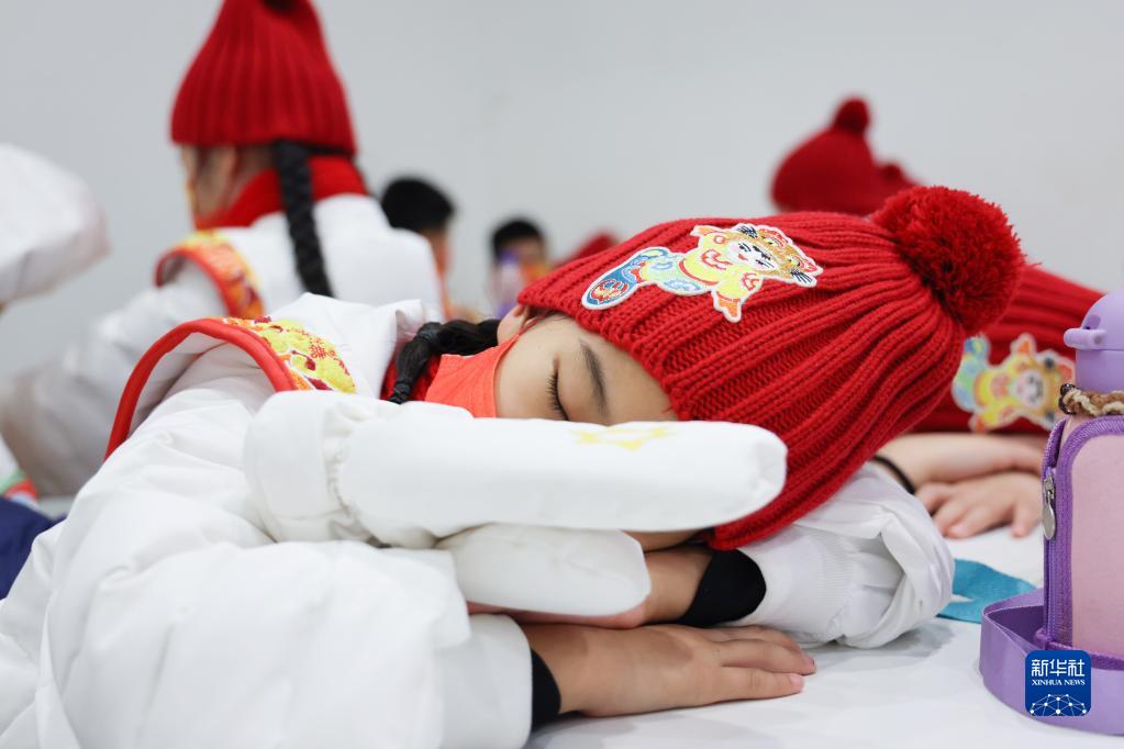 彩排前,马兰花儿童合唱团的孩子们在国家体育场(鸟巢)候场间休息(1月12日摄)。新华社记者 彭子洋 摄