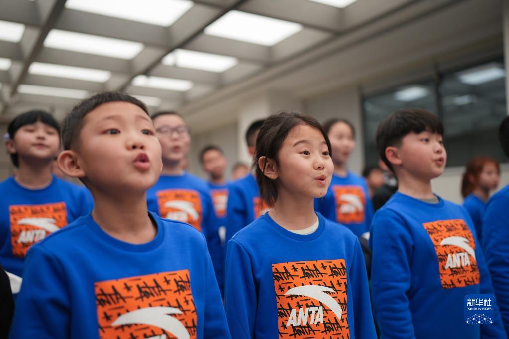 在国家体育场(鸟巢),马兰花儿童合唱团的孩子们在场上彩排(1月26日摄)。新华社记者 彭子洋 摄