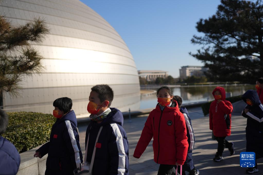 马兰花儿童合唱团的孩子们前往国家大剧院录音(1月17日摄)。新华社记者 彭子洋 摄