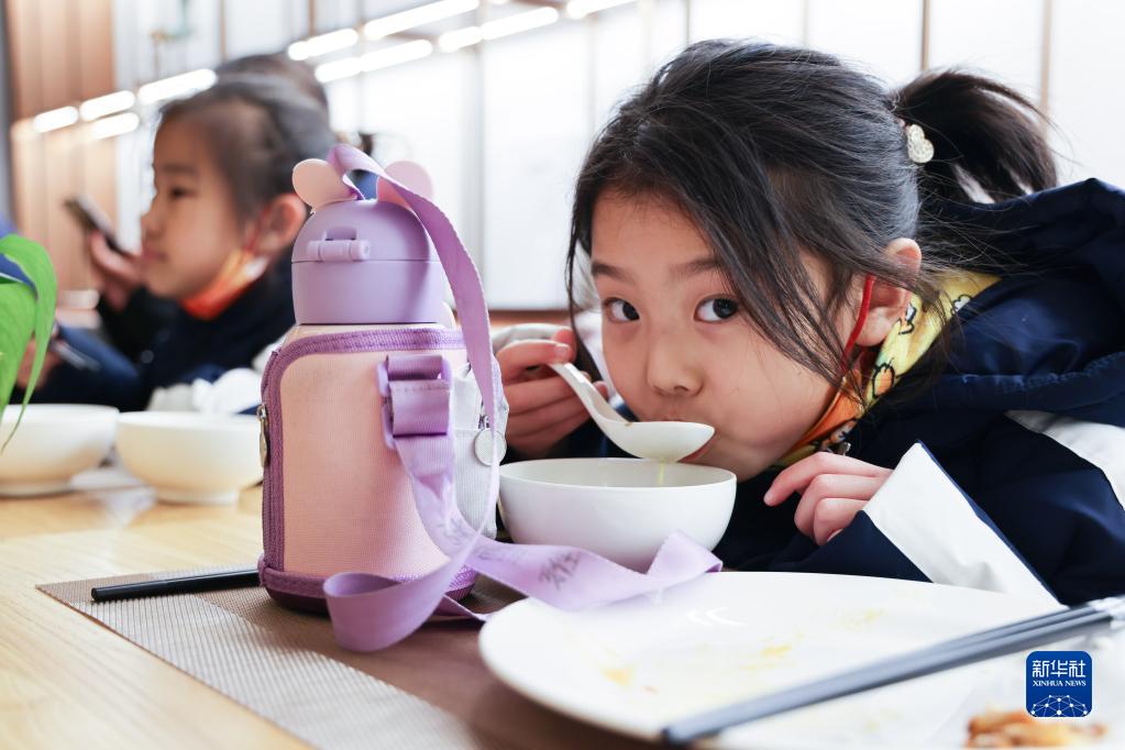 马兰花儿童合唱团的孩子在酒店吃晚餐(1月10日摄)。新华社记者 许雅楠 摄