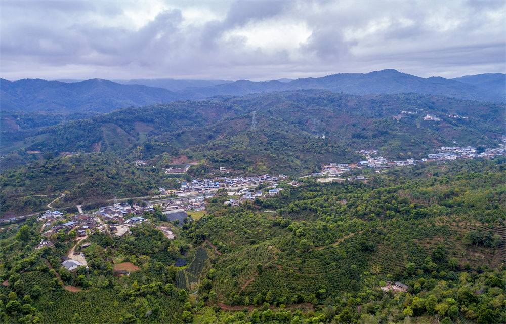 云南普洱市思茅区南屏镇大开河村及周边种植的咖啡(2月23日摄,无人机照片)。新华社记者 陈欣波 摄