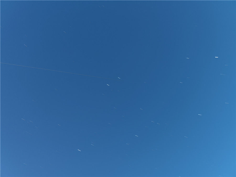2021年12月21日,中国空间站核心舱、天舟二号货运飞船、天舟三号货运飞船、神舟十三号载人飞船组合体过境南京上空。图为天文望远镜捕捉影像。(徐成城、朱一静 提供)