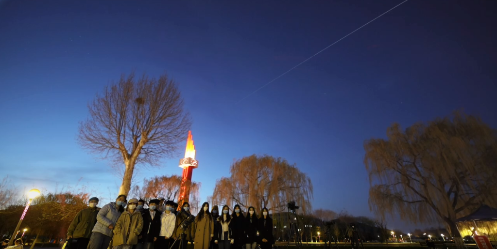 3月27日,北京奥森公园,孩子们跟随天文摄影爱好者一起拍摄中国空间站过境画面。(网友135****0854 摄)