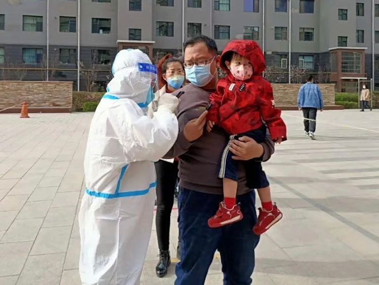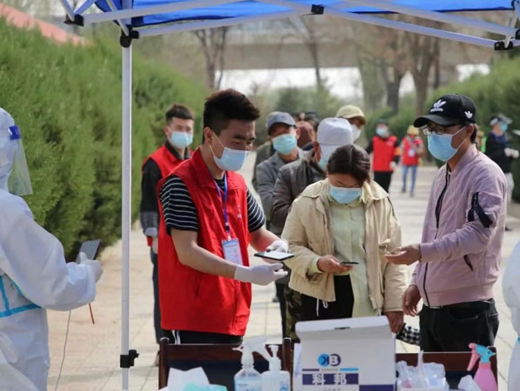 “年迈的老人腿脚不便,行动缓慢。眼看着做核酸检测的人越来越多,排起了长长的队伍,我心里十分着急,干脆背起老人,背着他通过绿色通道进行检测。这样,不仅方便了老人,也为早日完成全民核酸检测工作争取了时间。”在李园二期做志愿服务的青年志愿者杨君盛说。