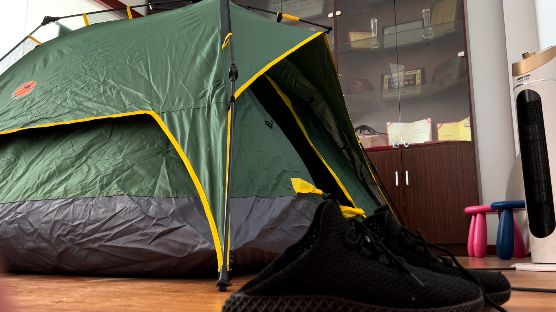 一次性漱口杯、半开的行李箱、还有两顶帐篷……居委工作人员就这样在小区居委会办公室安营扎寨了大半个月。这段时间,居委会的座机电话,即便是凌晨响起,也会有人接听。