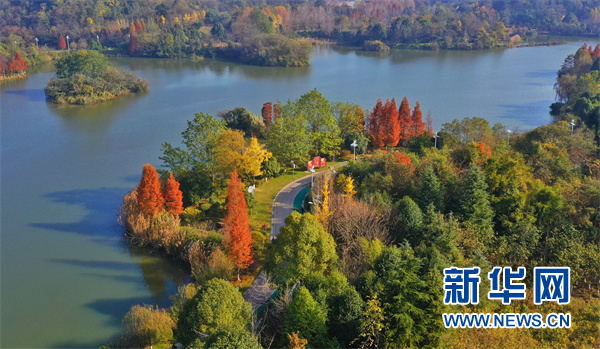 航拍色彩缤纷的贵阳观山湖公园(2021年11月18日摄)。新华网 卢志佳 摄