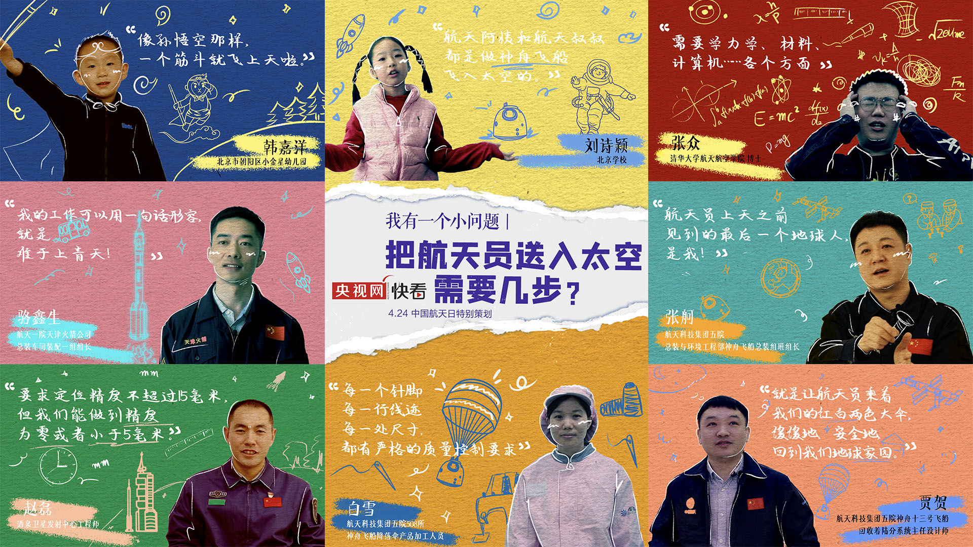 央视网消息:从孩提时代第一次仰望星空,到脚踏实地解码宇宙奥秘,再到航天员只身探索浩瀚星宇,我们已经历许多。经年向往,一朝梦圆,有把组装火箭看作搭积木的总装组长,有以零精度完成800余吨船箭组合体定位的发射场工程师,有用红白大伞接航天员回家的回收着陆分系统设计师,每个人都渴望飞天,每个人都用尽全力送航天员飞天。宇宙很大,飞天梦更大,继续一起扬帆远航吧!