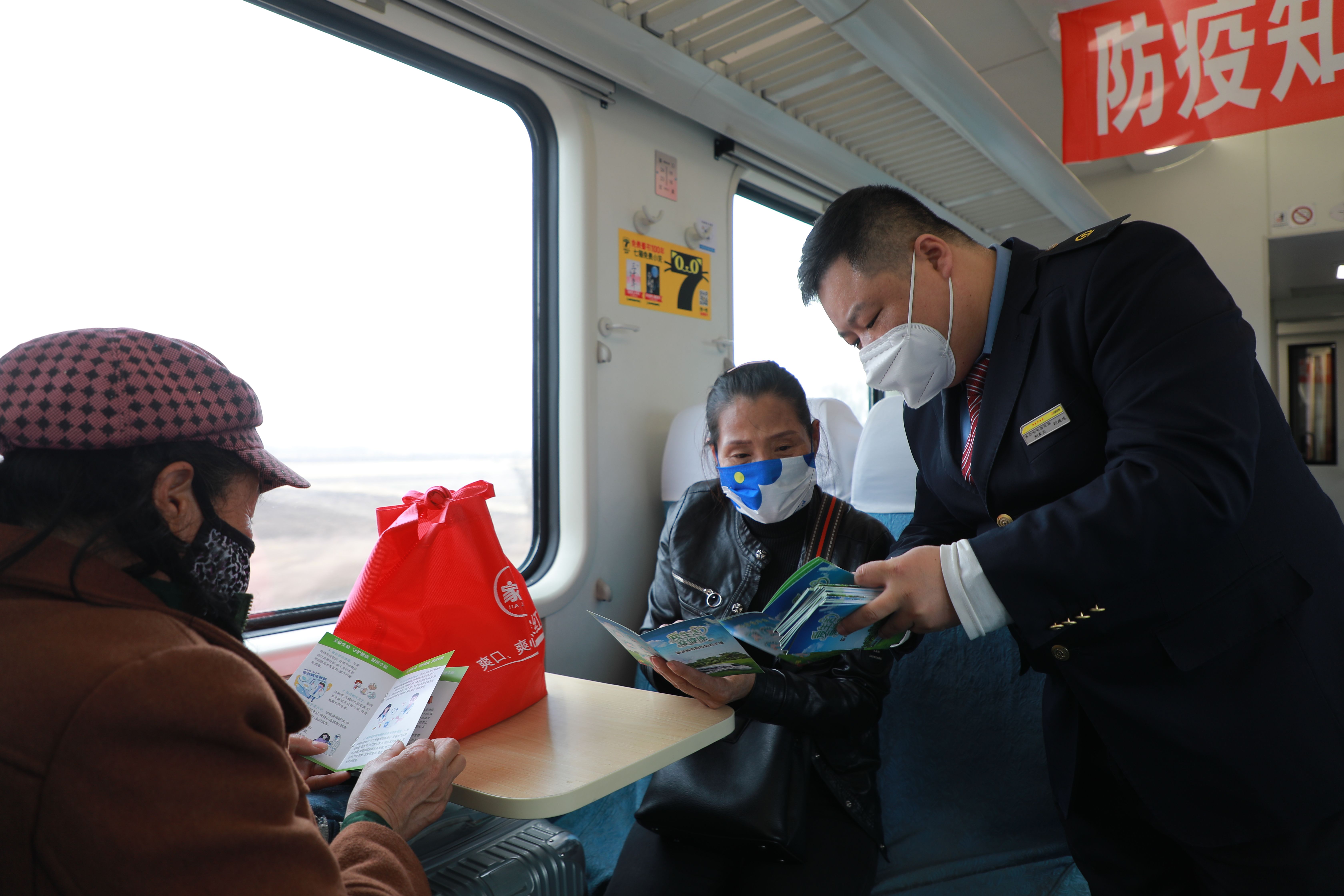 绥化、齐齐哈尔等车站采取提前预订办理团体票等方式为务农人员办理客票,沿途各站严格落实疫情防控要求,提前对售票厅、候车室等场所进行消毒通风,增设专用进站安检和体温测量通道,引导外出务工人员有序进站候车。列车乘务人员提示旅客分散就座,做好途中测温抽检,预备了医药箱、一次性医用口罩等防疫用品,同时,加强卫生间、洗面间、垃圾桶等重点部位的消毒保洁,确保旅客安全健康出行。