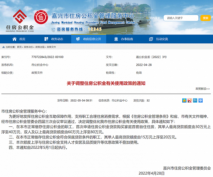 浙江嘉兴市住房公积金管理服务中心网站4日消息,为更好地发挥住房公积金互助保障作用,支持职工合理住房消费需求,根据《住房公积金管理条例》和省、市有关文件精神,经市住房公积金管委会四届三次会议审议通过,决定调整优化嘉兴市住房公积金有关使用政策,具体通知如下: