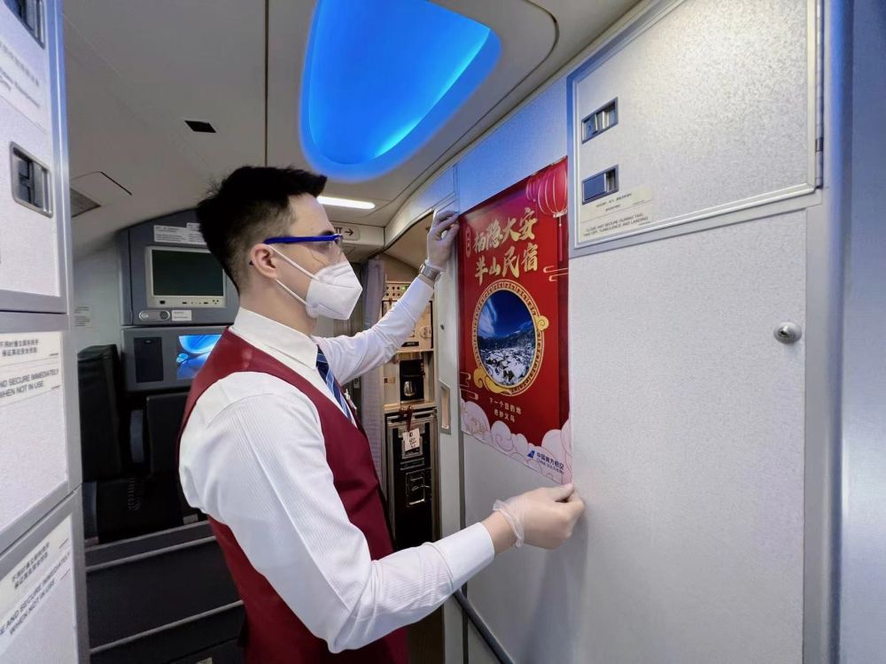 艾斯卡尔·艾沙在飞机上工作。 新华社发 (车捷 摄)